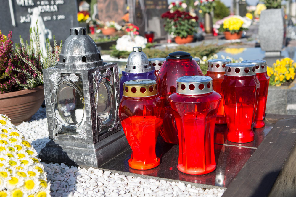 Klasyczny znicz szklany z dostawą bezpośrednio na grób. Możesz dodać go do usługi sprzątania lub zamówić osobno.